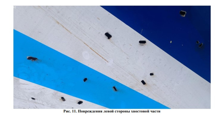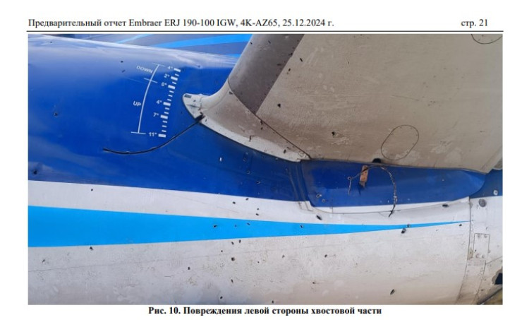 На уцелевших элементах хвостовой части самолёта, а также на киле и рулях высоты, были зафиксированы многочисленные отверстия. Часть из них была видна и на видеозаписях из салона ещё находившегося в воздухе борта. Эксперты указывали, что повреждения могли быть вызваны внешним физическим воздействием. Выжившие пассажиры позже рассказывали, что слышали звуки взрывов в небе над Грозным после неудачных попыток посадки.