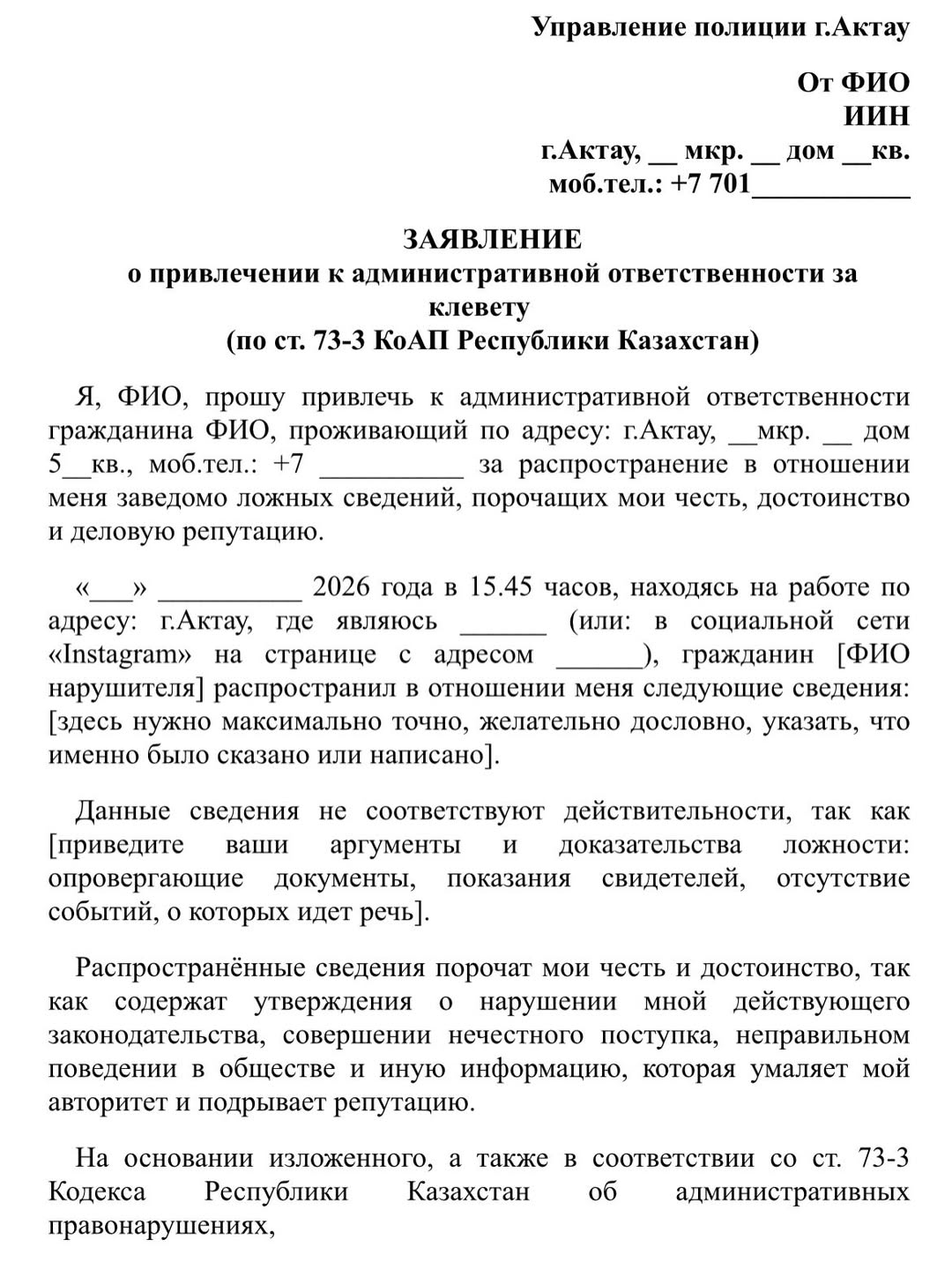 В социальных сетях нередко появляются публикации, содержащие недостоверную информацию о гражданах. Паблик Avtoadvokataktau выпустил подробную инструкцию, следуя которой можно без труда отстоять свои честь и достоинство в суде, передаёт Lada.kz.