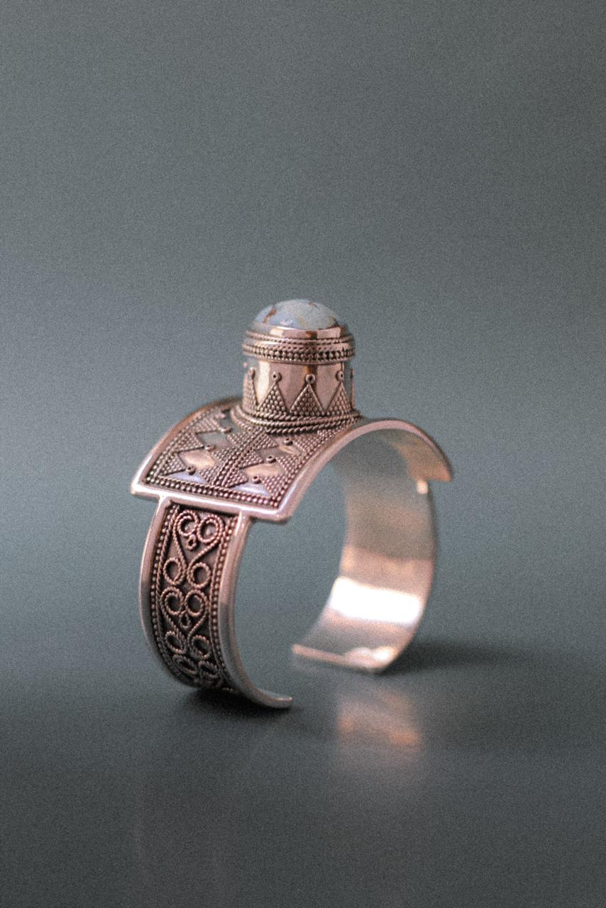 Каждое украшение, по словам мастера, несёт свой смысл. Например, один из самых узнаваемых казахских орнаментов – «қошқар мүйіз» (бараньи рога) – символизирует достаток, изобилие и благополучие. Этот мотив Дамир использует в разных изделиях – от браслетов до серёг, стараясь сохранить баланс между традицией и современным дизайном.