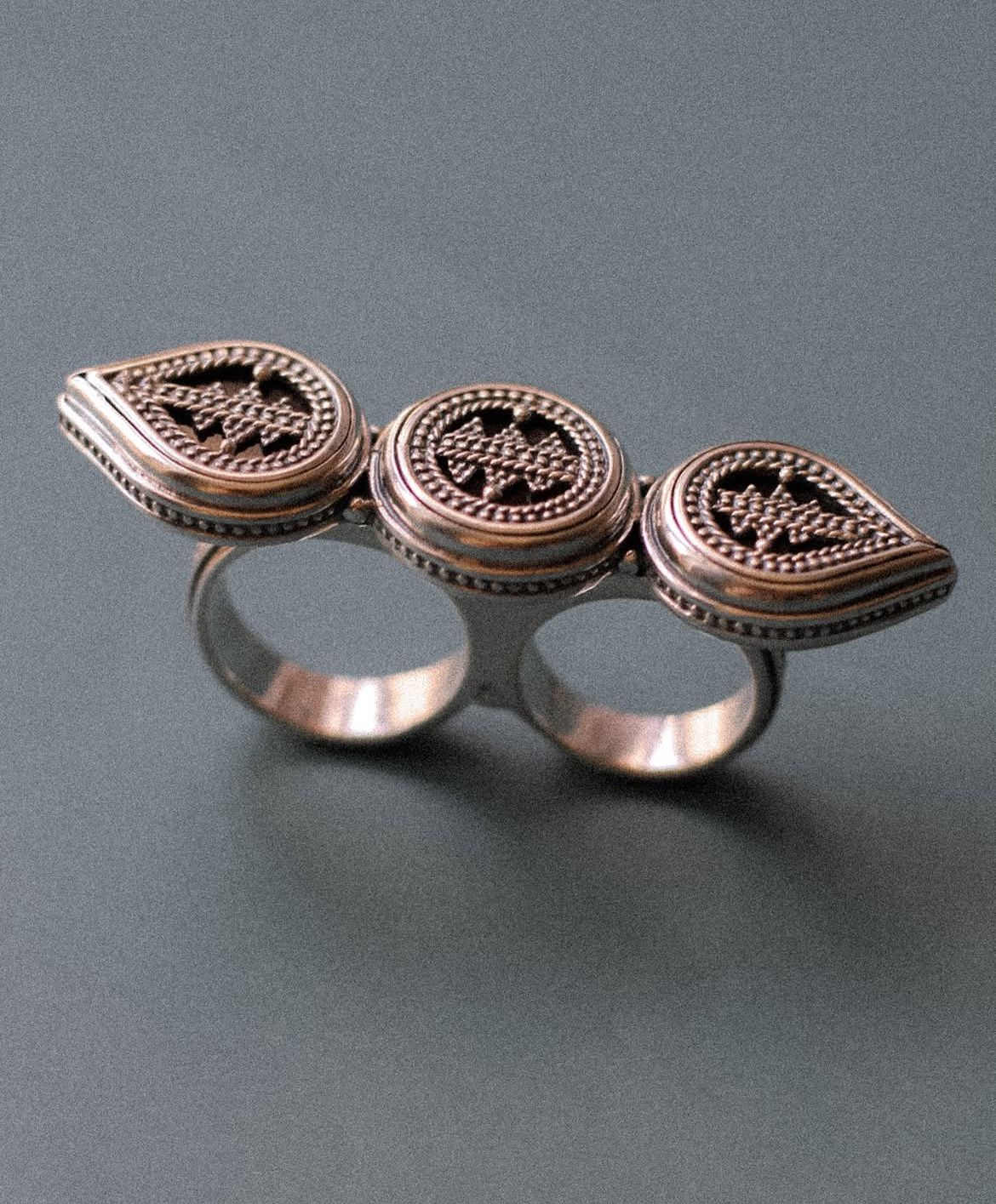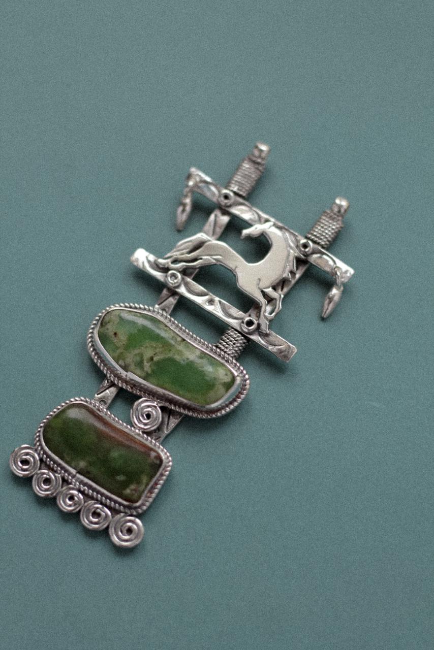 Одним из наиболее узнаваемых элементов в его работах стали бойтумары – традиционные амулеты, которые в казахской культуре считались оберегами от сглаза и злых сил. Ранее в них помещали землю с родных мест, а с приходом ислама – строки из Корана. Сегодня мастер сохраняет саму идею защиты, но придаёт украшениям актуальную форму, делая их не только символичными, но и эстетически привлекательными.