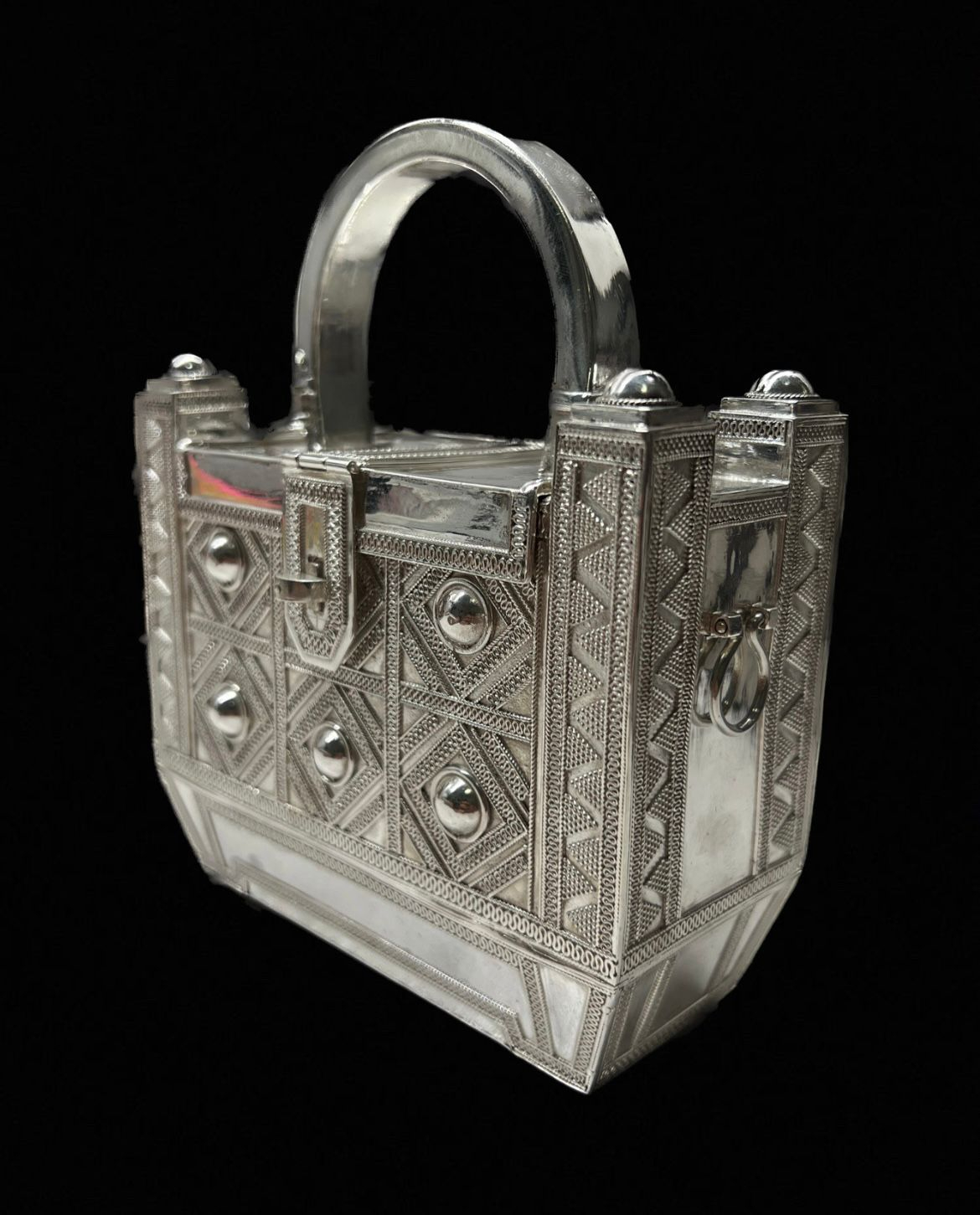 Одним из своих самых необычных проектов он считает серебряную сумку в форме сундука, созданную в 2023 году в коллаборации с дизайнером из Алматы. Это изделие стало своеобразным символом синтеза традиции и современности, продемонстрировав, что национальные мотивы могут выходить за рамки привычных форм.