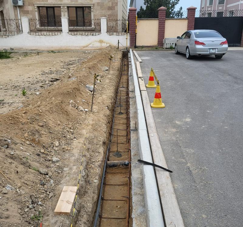 По его словам, работы уже находятся на стадии подготовки: выкопана траншея, выполнено армирование, и в ближайшее время рабочие планируют заливать фундамент под ограждение.