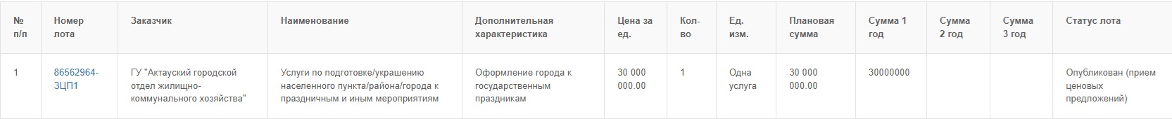 Уделяя внимание датам проведения конкурса, возникает закономерный вопрос: успеет ли подрядчик после завершения конкурсных процедур приступить к украшению областного центра ко Дню единства народа Казахстана, который уже не за горами.