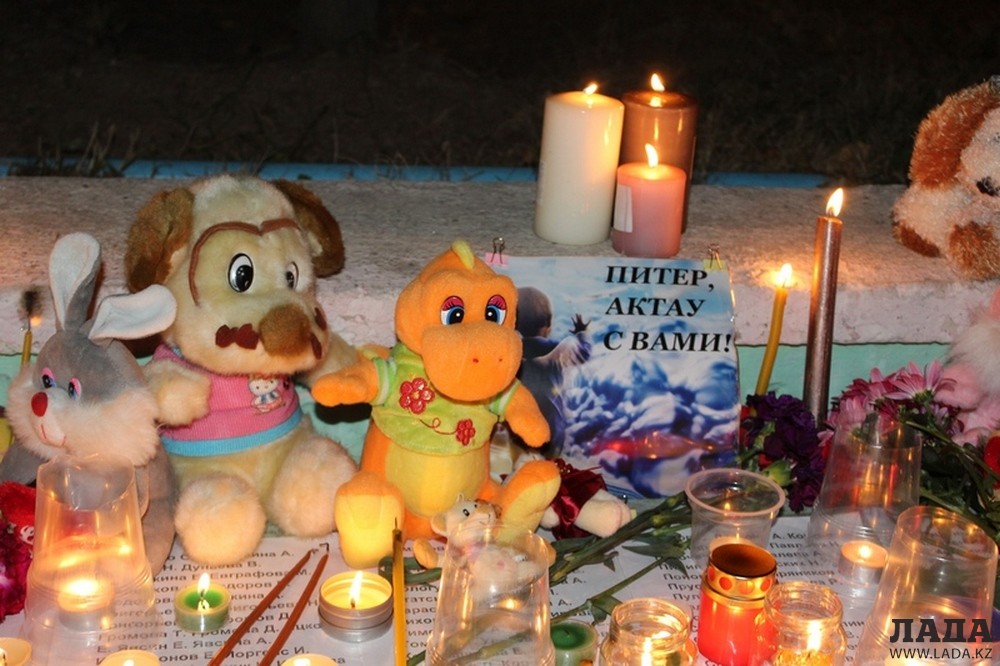 Люди несли цветы, игрушки, шары, список погибших, фото самой маленькой пассажирки авиарейса 9268 Дарины Громовой с надписью «Питер, Актау с вами!»
