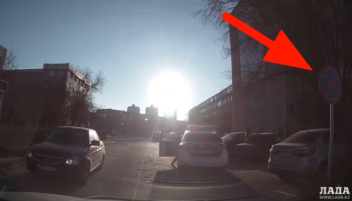 запечатлено, как полицейская машина Subaru Legacy с государственным номером 086 КР/12 нарушает правила дорожного движения и останавливается под запрещающим знаком «Остановка запрещена». Действие происходило 9 февраля в 7 микрорайоне.