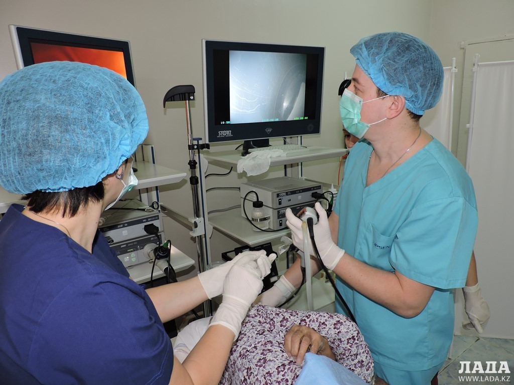 Для проведения операции был приглашен врач-эндоскопист онкологического центра Астаны Алексей Зеленый. Ассистировала врач-эндоскопист областного онкологического центра Ырыс Усербаева.