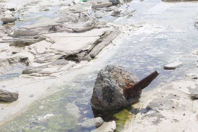 На дворе апрель, до купального сезона осталось два месяца, но пляж остался в прежнем состоянии. С него не вывезены ни крупный мусор в виде бетонных блоков и давно отслужившее свое металлическое сооружение, но и сухой камыш, который еще два месяца назад работники коммунальных служб собрали и сложили в кучу.