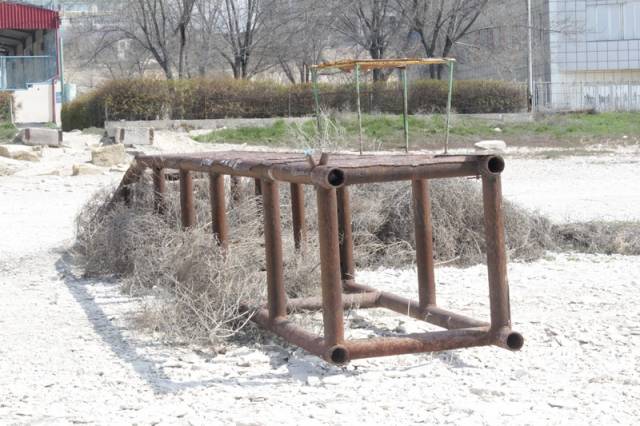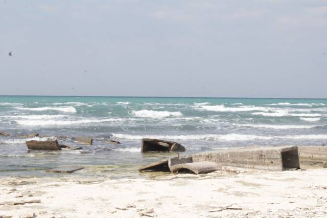 Арматура, торчащие ржавые трубы, камни, сломанные тенты, мусор - так выглядит сейчас главный городской пляж. Уркен Бисакаев ранее заявлял, что с начала марта на берегу моря начнутся работы по благоустройству.