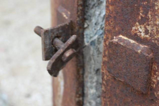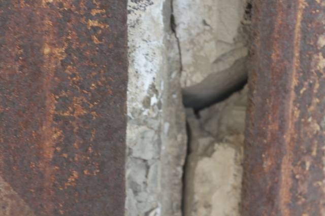 Капитальный ремонт проводился примерно 18-20 лет назад.Дорогу перекрывали, на золотые ездили по старой,а для канала прорыли другое русло,оно и сейчас частично сохранилось перед основным, если ехать со стороны города.Производилось усиление опор.Утолщение у основания опор оно и есть.Ржавый металл- это остатки опалубки.