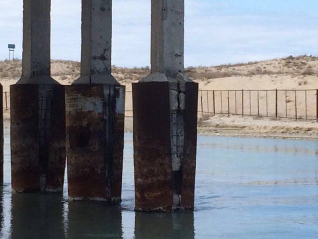Реконструкцию моста над водосбросным каналом ТОО «МАЭК-Казатомпром» (в народе именуемого «Шора») не проводили более 50 лет. Тревогу по поводу состояния бетонных опор, на которых держится мост, забили водители.