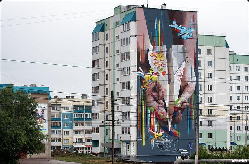 - Ну, тогда мне было лет 12. На сэкономленные на школьных обедах деньги я купил китайскую краску и занялся делом. С тех пор граффити – неотъемлемая часть моей жизни. Рисовать интересней на улице, там есть детишки, которые помогают, подсказывают, есть диалог, - говорит художник.