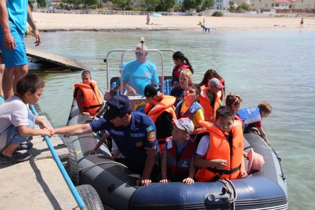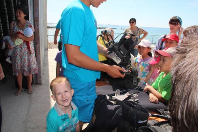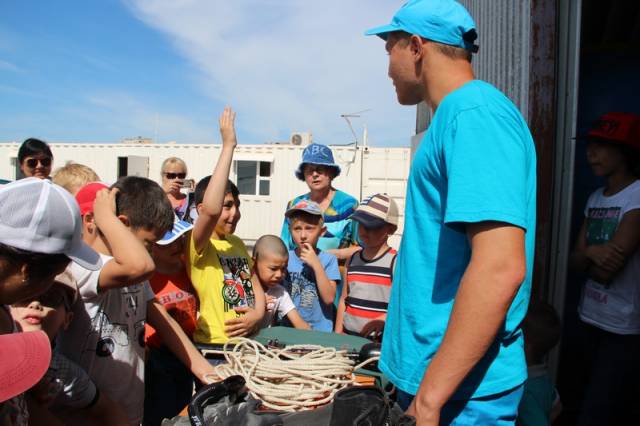 - Дети во время летних каникул больше времени проводят на море, поэтому им мы уделяем особое внимание. Снизить количество происшествий на воде с участием детей можно только с помощью профилактических мероприятий. К примеру, мы рассказали, как дети должны вести себя на воде и куда звонить, если нужна помощь. Также рассказали про тонкости нашей профессии, как применяется снаряжение, как правильно надевается гидрокостюм, показали спасательные средства, круги, жилеты, конец «александрова», акваланги, - говорит спасатель Дамир Русинов.