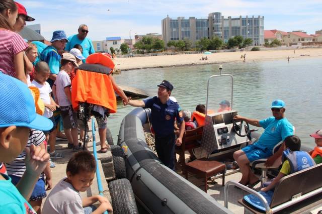 Кроме того, юных спасателей прокатили на спасательных катерах.