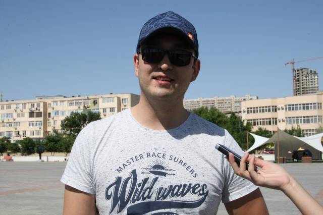 Одним из первых за «уличное пианино» сел выпускник детской школы искусств Актау, лауреат республиканских и международных конкурсов Рашид Рахимов, ученик Натальи Пихтеревой.