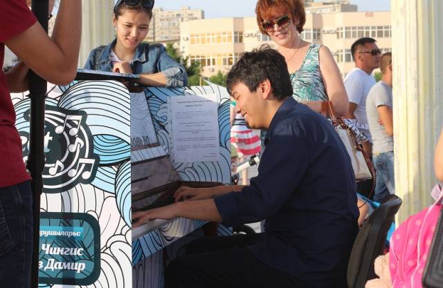- В Европе данный проект реализуется с 2008 года. Фортепиано устанавливаются в скверах, парках, на железнодорожных вокзалах, в аэропортах и в других людных местах. После просмотра видеороликов в интернете мы задумались: «А почему бы не реализовать данный проект у нас в Актау». Нас поддержал акимат Актау, детская школа искусств, «ADVER» и Сергей Комиссаров. С такой дружной командой мы смогли сегодня реализовать этот проект. И рады, что начало положено, - отметили организаторы проекта «Уличное пианино».
