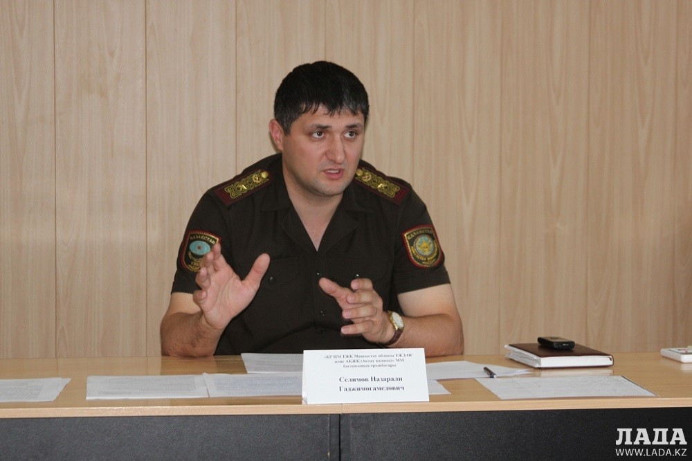 Заместитель начальника службы пожаротушения Назарали Селимов говорит о важности развития пожарного добровольчества. Фото Рукии Сычевой