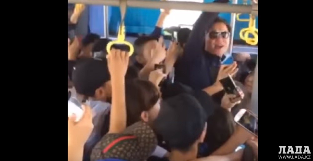 На кадрах опубликованного ролика видно, как певец в переполненном автобусе исполняет гимн Казахстана. Тем временем пассажиры автобуса дружно подпевают певцу. Многие пассажиры успели заснять певца в автобусе на камеры мобильных телефонов.