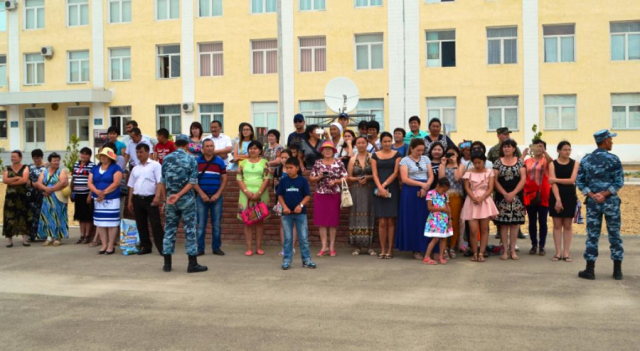 - Я приехала из Кокшетау к сыну Асхату Батырову. Ему 22 года и он с удовольствием пошел отдать долг Родине. Я была очень удивлена. Не ожидала, что тут все настолько хорошо. Вокруг красиво. Военный городок прекрасный. Оказывается, и в мангистауских степях имеются такие оазисы для наших ребят. Особенно понравилось всем Каспийское море. Родителей встретили чудесно. И чаем напоили, и с сыном дали повидаться. Одним словом, тут все молодцы, - рассказывает Жаннат Батырова, мама одного из новобранцев.