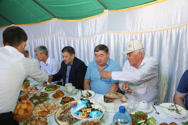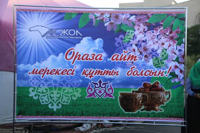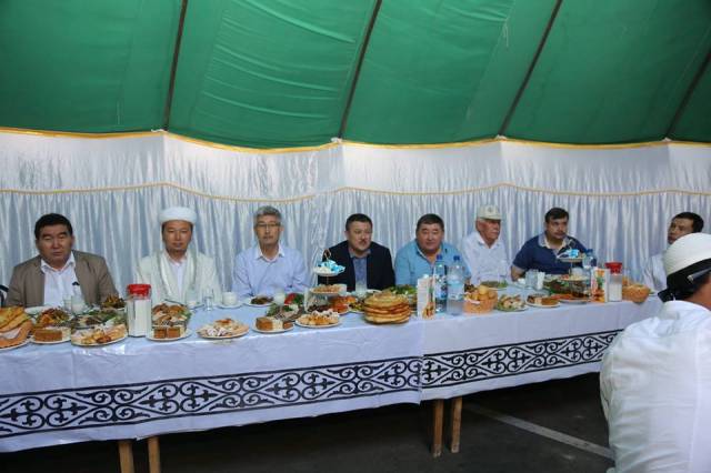 Рядом с главной мечетью Мангистауской области установили юрты и накрыли дастарханы. В этом помогли предприятия и политические партии региона.