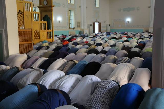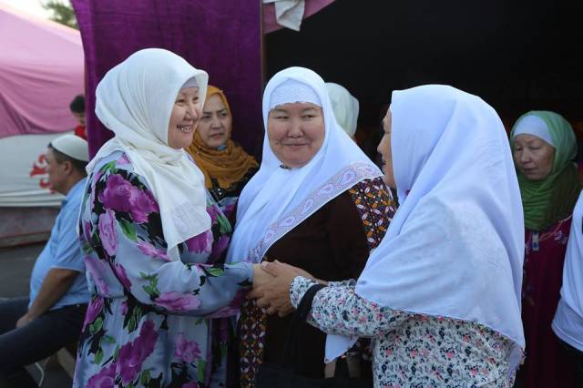 Жители, пришедшие на Айт намаз также поздравляли друг друга. В мечети на Айт намаз собралось около четырех тысяч верующих.