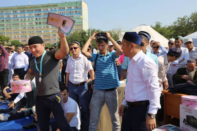 В рамках праздничной программы прошли соревнования по асык ату, аркан тарту, поднятию гири, борьбе. Особый интерес вызвало состязание кошкар көтер – поднятие барана. Победителей наградили ценными подарками.