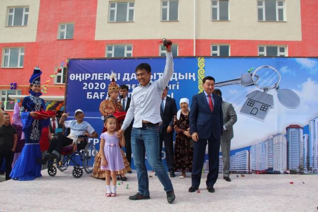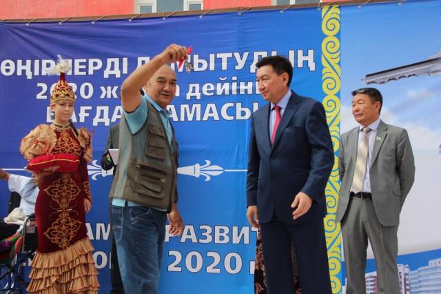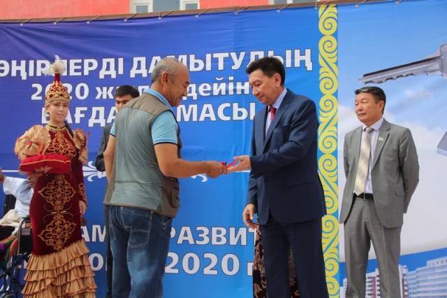 - В 2015 году из-за отсутствия финансирования строительство приостановили. Но в марте нынешнего нам вновь выделили деньги, и вот сегодня мы вручаем ключи первым новоселам. В доме только двухкомнатные квартиры, площадью 55 квадратных метров, - рассказал директор подрядной организации Байжан Узакбай.