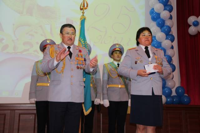 - Начал службу я буквально после развала Союза. Начинал работать с простого оперативника, теперь уже руководитель. На каждом этапе службы приходилось сталкиваться с разными трудностями. В нашей службе, главное, быть всегда начеку и не дать уйти преступнику от закона. Не жалею, что связал свою жизнь со службой в полиции. Сегодня меня указом главы государства наградили медалью, я очень горд, что в списке награжденных. За 25 лет для страны сделано много всеми нами, это заслуга каждого жителя Казахстана. Желаю здоровья, процветания, мира и добра, - сказал Александр Попов.