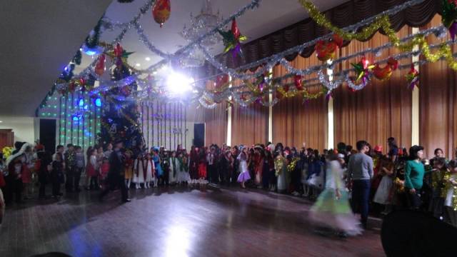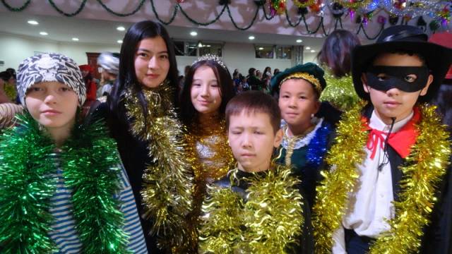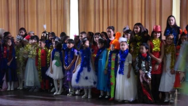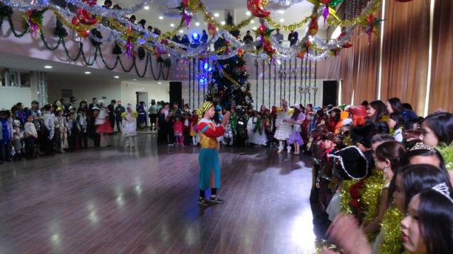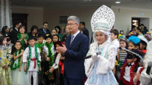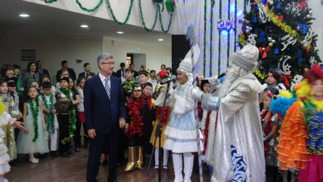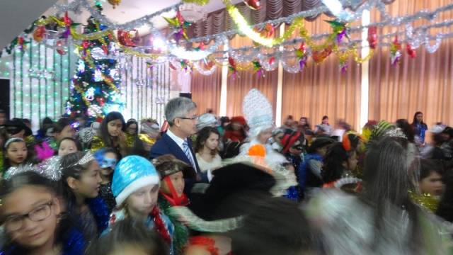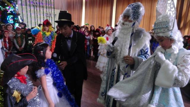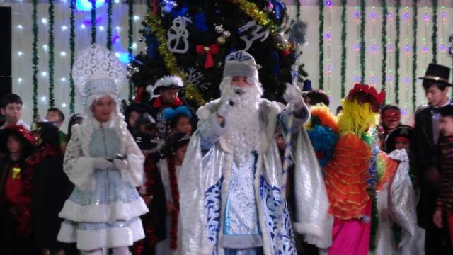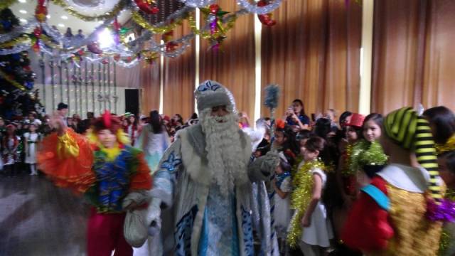 Творческие коллективы КДК имени Абая подготовили праздничную программу. Дети водили хоровод с Дедом Морозом и Снегурочкой, пели песни, читали стихи.