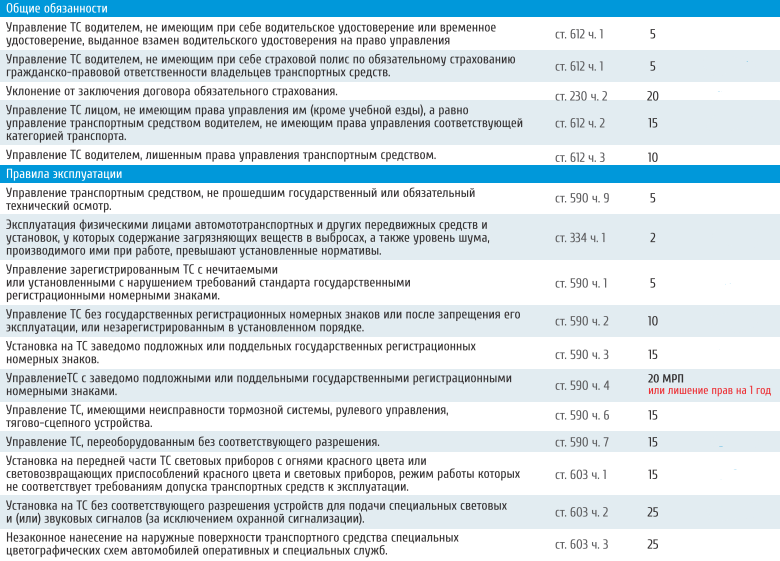 Проезд на запрещающий сигнал светофора (статья 599 часть 1 КоАП РК), превышение скорости на 10-20 километров в час (статья 592 часть 1 КоАП РК), непропуск пешехода (статья 600 часть 1 КоАП РК), нарушение участником дорожного движения ПДД, повлекшее создание аварийной обстановки (статья 606 часть 1 КоАП К) и мелкое хулиганство (статья 434 КоАП РК) наказывается штрафом 10 МРП. В 2016 году сумма штрафа составила 21 тысячу 210 тенге. В 2017 году он вырос до 22 тысяч 690 тенге. Разница составила 1 480 тенге.