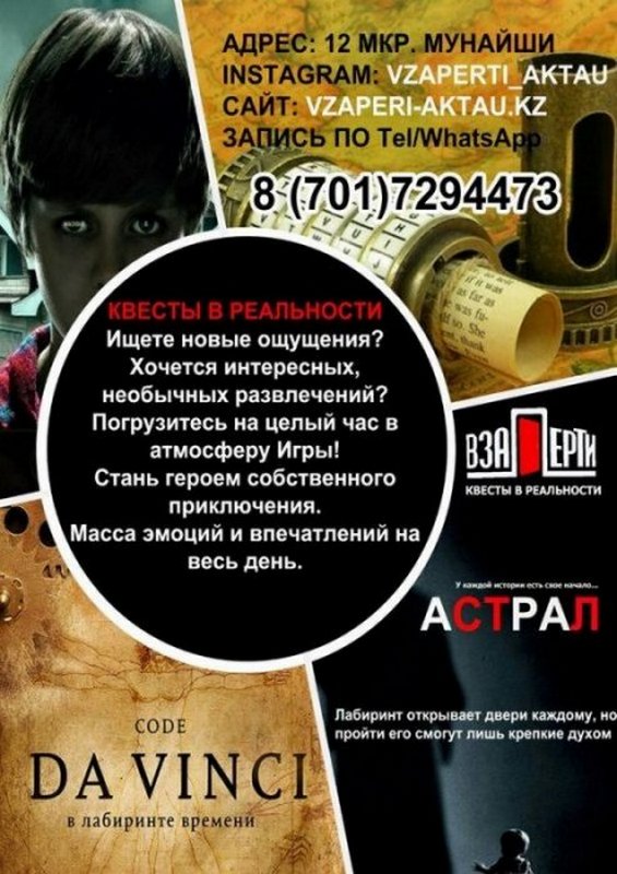 Квест в реальности — это увлекательная «живая» игра для команды из нескольких человек в специально оборудованном для этого помещении. Это возможность не только весело, но и с пользой провести время, проверить свои интеллектуальные способности и находчивость. Стань героем собственного приключения!