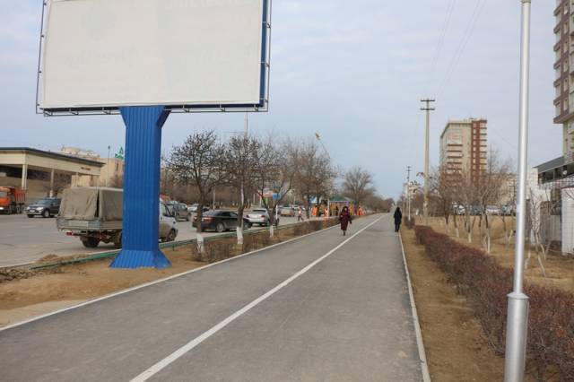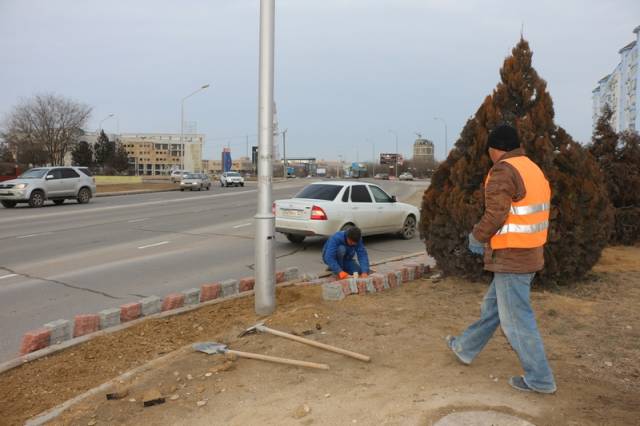 Также в Актау ведется прокладка прибордюрной полосы из брусчатки. Ее ширина составляет 70 сантиметров. Сделана она для того, чтобы на дорогу попадало как можно меньше пыли и грязи.