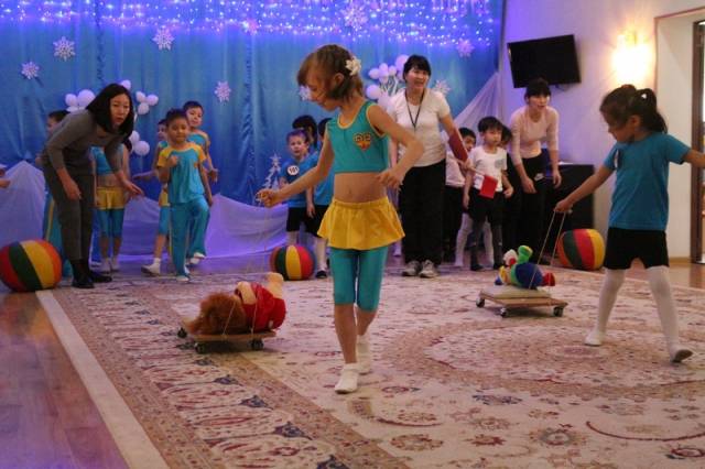 Все три команды старались проявить свои спортивные качества. Участникам необходимо было показать свое умение быстро бегать и пролазить в обруч, продемонстрировать меткость, пытаясь попасть мячом в корзину.