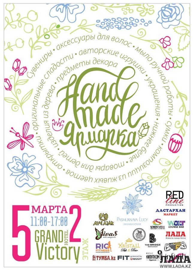 Ярмарка изделий ручной работы «Hand Made» пройдет в девятый раз. Здесь можно будет увидеть и приобрести аксессуары и украшения для волос, сумки, композиции из живых цветов, открытки, оригинальные сладости, игрушки. Все это, по словам организаторов, сделано руками мастеров, которые примут участие в ярмарке. В этот раз здесь будут представлены изделия из серебра и нижнее белье, сделанные вручную.