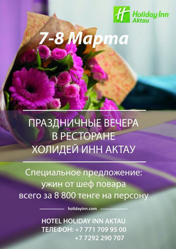 Место проведения: Гостиница «Актау», 2 микрорайон. Дополнительная информация и бронирование по телефонам: 8 777 533-26-326, 52-49-41.