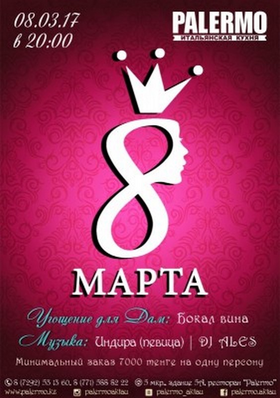 Место проведения: Бар Palermo, 5 микрорайон, здание 5А. Дополнительная информация и бронирование по телефону: 53 13 60, +7 (771) 588 82 22.