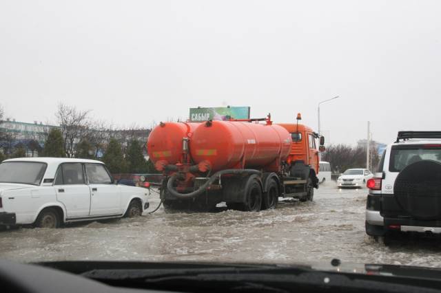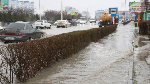 В воде оказались набережная, центральная дорога возле акимата Мангистауской области и другие улицы. Коммунальные службы, по сообщению ТОО «Кала жолдары», ведут работы по ликвидации последствий проливных дождей в усиленном режиме.