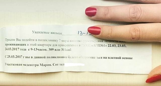 - Внизу подпись: С 25.03.2017 года в данной поликлинике вас будут обслуживать на платной основе. Как это понимать? Мы должны будем платить в государственной поликлинике? За что и кому? - удивляется женщина.
