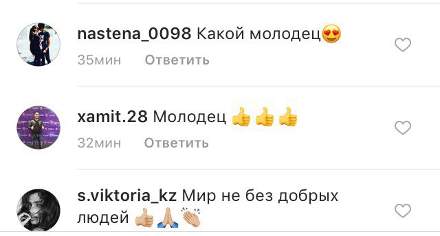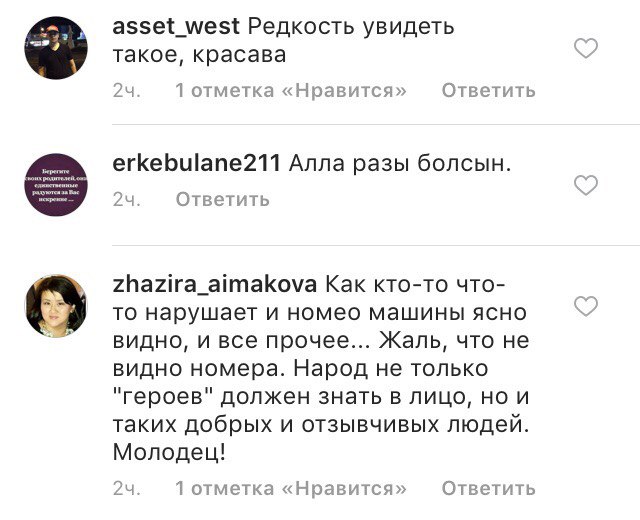 Это лишь малая часть комментариев, которые вызвал видеоролик об отзывчивом водителе в социальных сетях и на сайте Lada.kz.