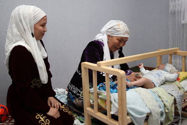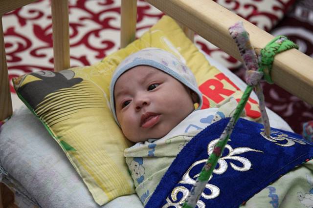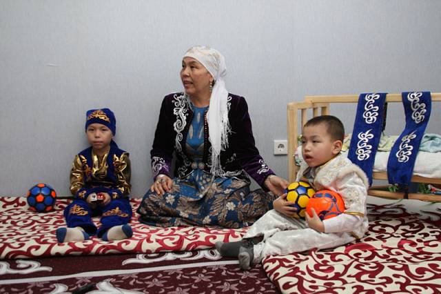 Многодетная мама своими руками приготовила приданое для старшей дочери Гулистан. А младший внук Улболсын Газизбек перестает плакать, когда бабушка поет ему колыбельную песню.