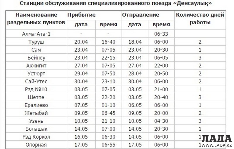 Прибытие на станцию «Туруш» запланировано на 16:40 в четверг, 20 апреля.