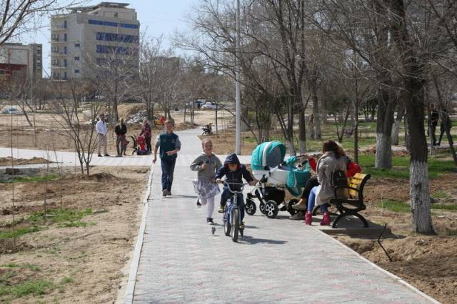 - В рамках благоустройства парка выполняются работы по устройству тротуаров и установке вдоль них опор освещения, высаживаются дополнительно деревья, организовывается система полива, построен общественный туалет, организованы дорожки для велосипедов, построены две автомобильные парковки, - рассказал Уркен Бисакаев.