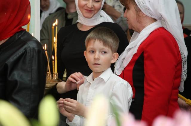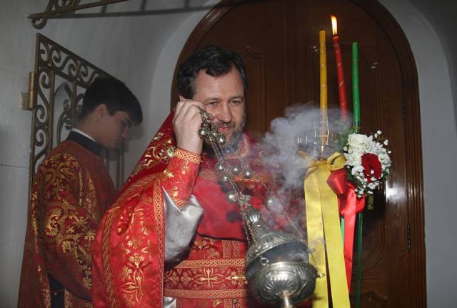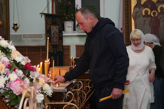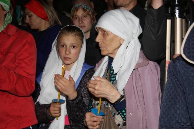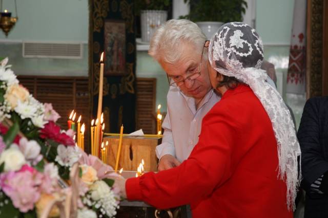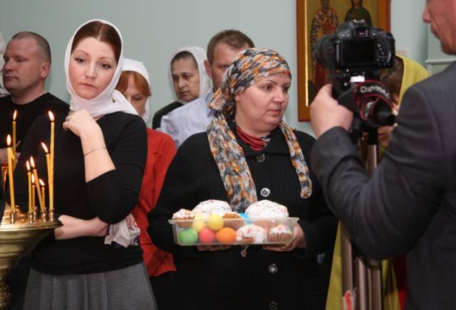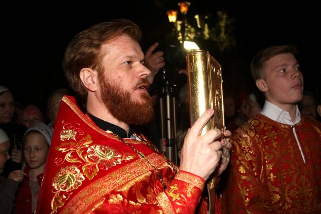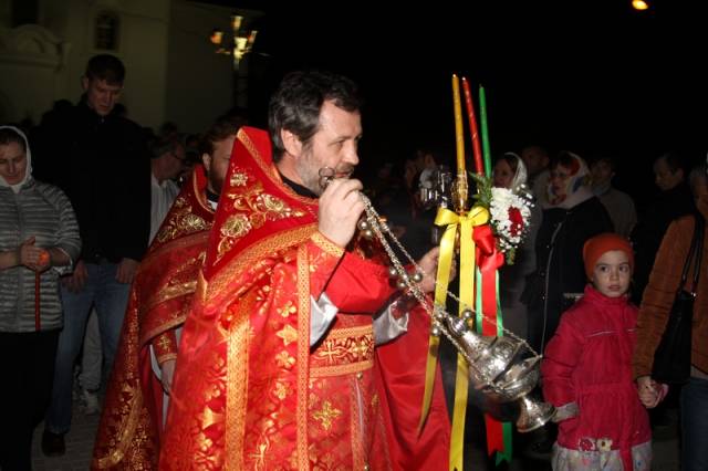 В одиннадцать часов вечера начался праздничный молебен, окончившийся крестным ходом и торжественными словами настоятеля храма: «Христос воскресе».