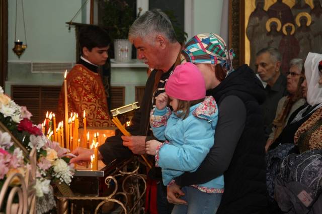 В Актауской благовещенской церкви прошла литургия. Христиане освящали куличи и крашеные яйца. После обряда жители Актау унесут их домой, чтобы разделить пасхальную трапезу с родными и близкими.