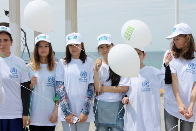 В рамках недели безопасности дорожного движения на набережной 15 микрорайона Актау 12 мая прошел флешмоб «Сохрани жизнь! Сбавь скорость!». В мероприятии участвовали юные инспекторы дорожного движения из СШ №8 и учащиеся школы №1. Ученики запустили в небо белые шары. В завершении флешмоба каждому участнику вручили светоотражающие ленты.