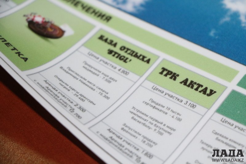 - Все компании, места и события в этой игре будут связаны с нашим городом. Каждое поле будет занято определённой компанией, которая действительно существует и работает в Актау. Компании могут купить место на поле нашей «Монополии». Это своего рода реклама. Все происшествия также адаптированы под Актау. Например, перешёл дорогу в неположенном месте – штраф 2000 тенге. Подал рекламу в газету «Лада» и она сработала – плюс 20 000 тенге. И всё в таком духе, - рассказал Арсен Даулетов.