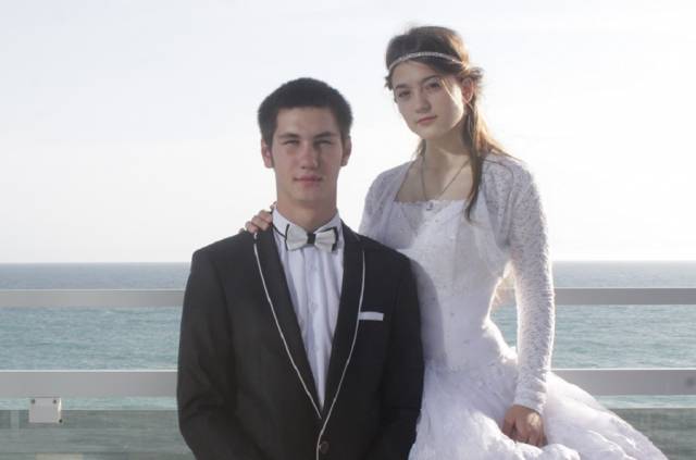 С благотворительной миссией на парад пришли 15-летний Сергей Пенов и 13-летняя Эля Качанко. Ребята встречаются семь месяцев, но мечтают однажды создать свою семью.
