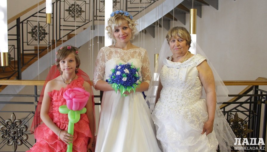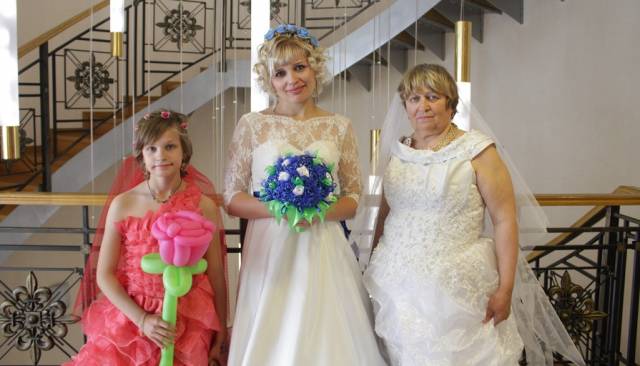 Всей семьей принять участие в параде женихов и невест решили Галина, Виктория и Милана Бережновы. Бабушка, мама и внучка готовились несколько дней: подбирали платья, делали прически. Не забыли и про главный атрибут — букет невесты.