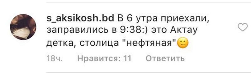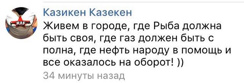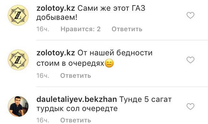 - Живем в городе, где рыба должна быть своя, где газа должно быть сполна, где нефть народу в помощь. И все оказалось наоборот. Сами же этот газ добываем и от бедности стоим в очередях, - пишут в социальных сетях жители Актау.