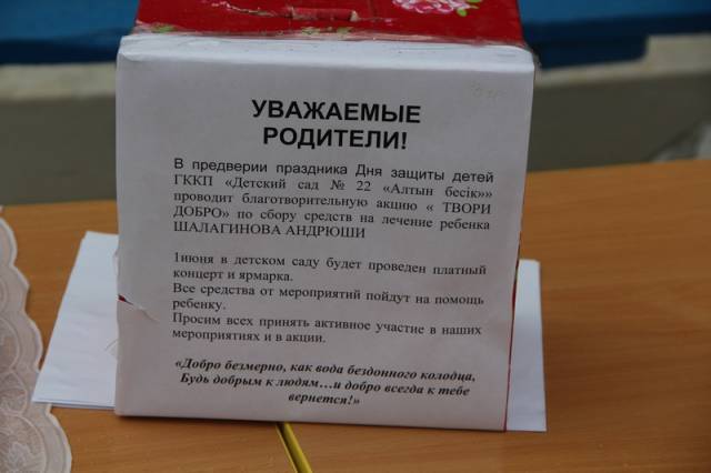 - Мы неоднократно проводили подобные мероприятия, помогали детям. Собирали деньги на операции и лечение, ездили в дом престарелых с концертом. В нашем детском саду параллельно с обучающими задачами стоит еще одна - нравственное воспитание детей. Мы учим творить добро. В последнее время многие родители совершают ошибку, выдвигая материальные ценности на первое место. Мы узнали, что есть трехлетний ребенок, который нуждается в помощи и его родителям очень сложно с этим справиться. Сейчас такое время - дорогие лекарства и лечение. Родители поддержали идею провести благотворительную акцию, - сказала Ирина Напалкова.