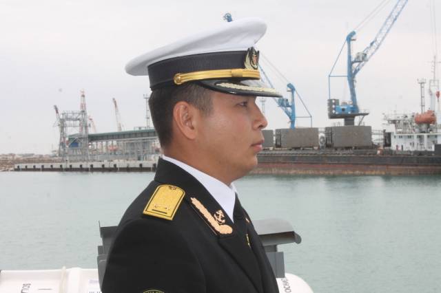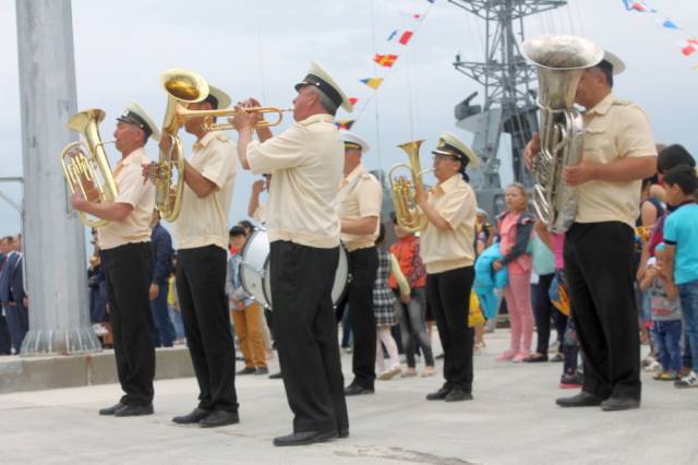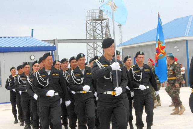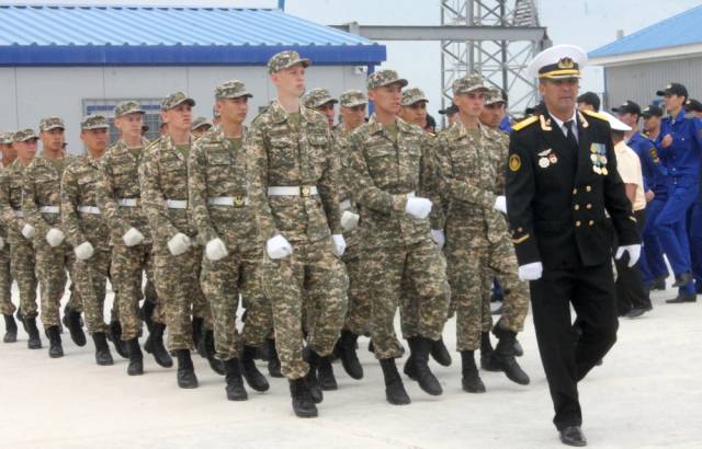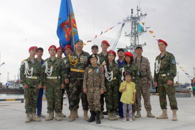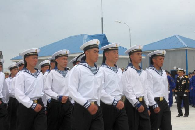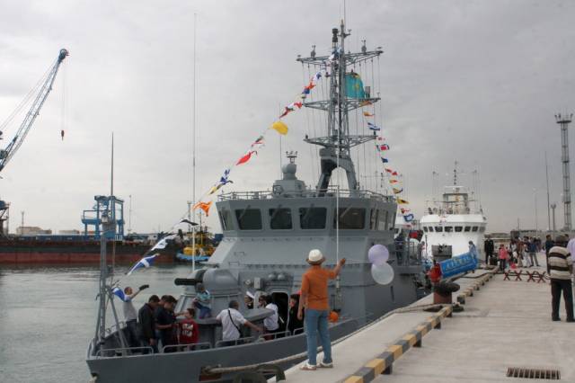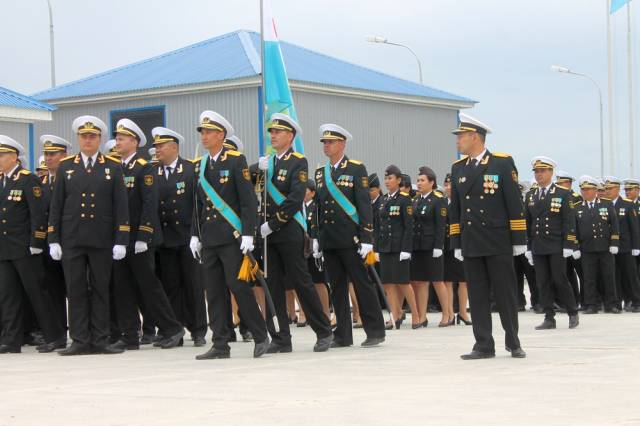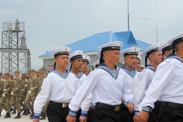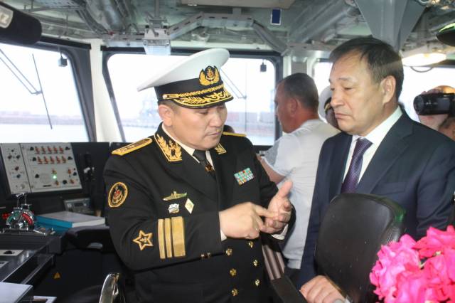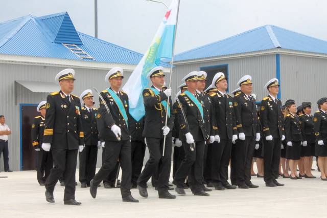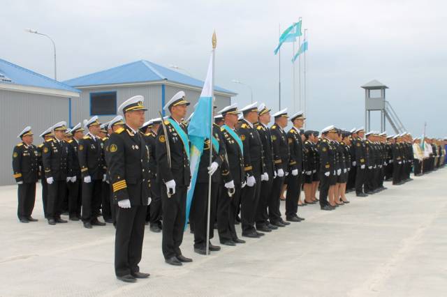На борту военного корабля в морском порту Актау 1 июня подняли флаг Военно-морских сил Казахстана. На церемонии присутствовал вице-адмирал Жандарбек Жанзаков, главнокомандующий Военно-морскими силами (ВМС) вооруженных сил (ВС) Республики Казахстан.
